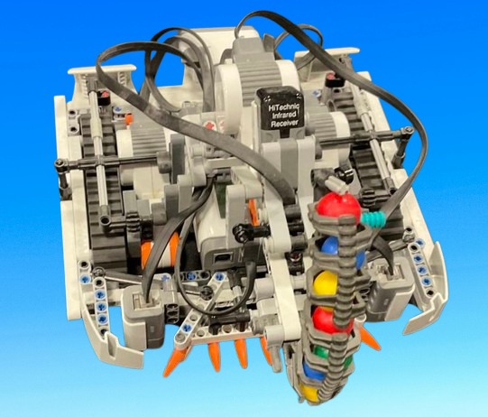 Made for MINDSTORMS stock sumo with a detachable Zamor sphere launcher. Can be remotely operated via a Bluetooth controller or PF infrared remote.